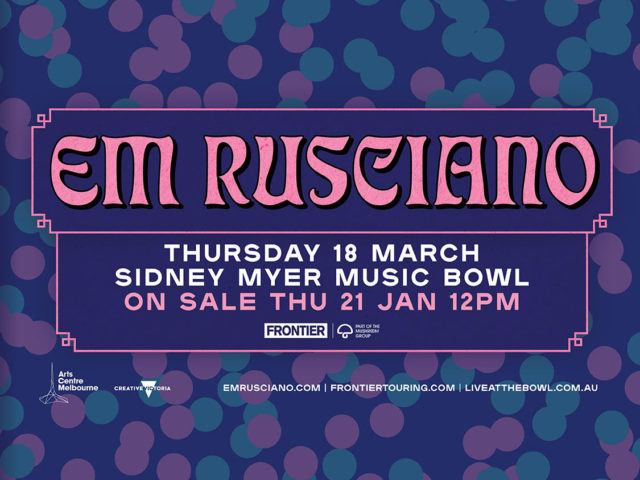 Em Rusciano takes to Melbourne’s Sidney Myer Music Bowl on Thu 18 Mar as part of ‘Live at the Bowl’ concert series | Special guest Tina Del Twist